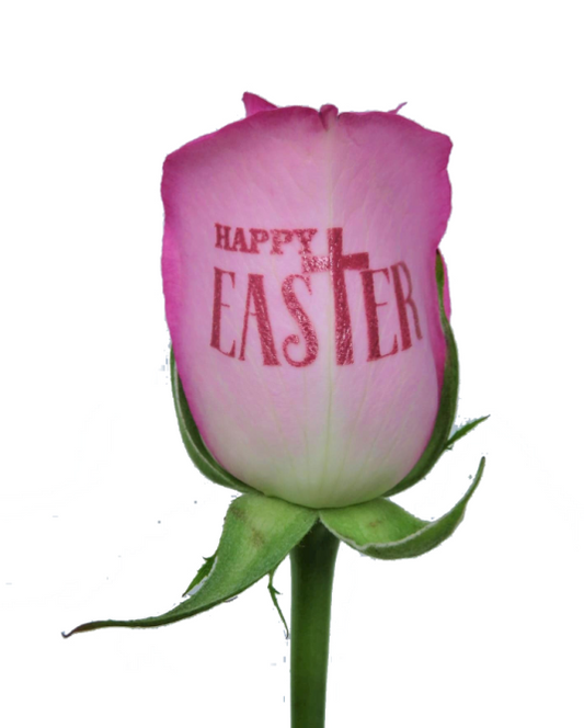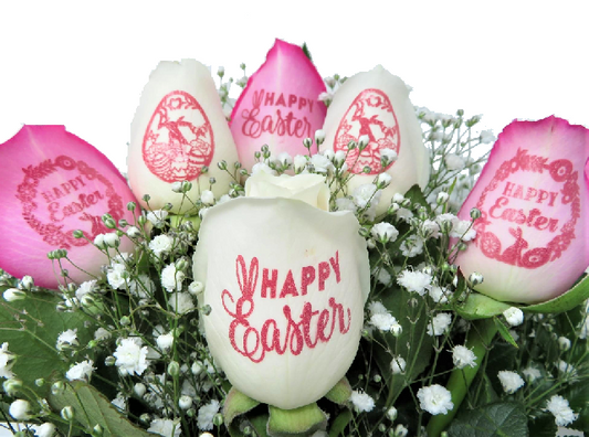 6 Easter Roses - 3 Pink Roses and 3 White Roses with Pink Ink