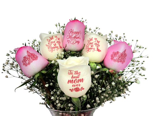 6 Pink and White Roses - Happy Mother's Day Bouquet