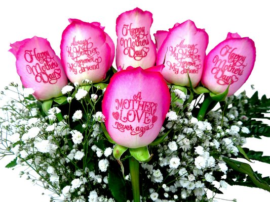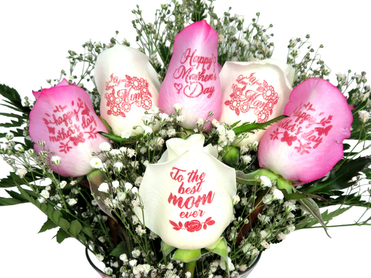 6 Pink Roses - Mother's Day Bouquet with Pink Ink