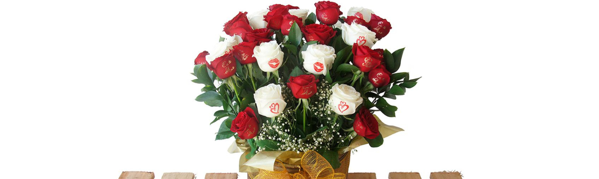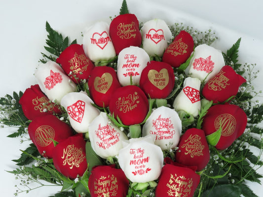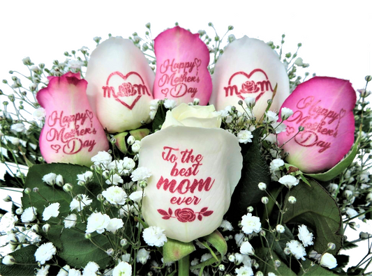 24 Roses Bouquet For Mother's Day With Love Messages Printed On Each (Pink And White Roses)