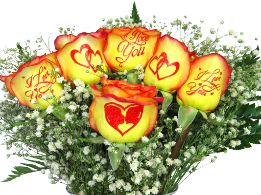 12 Red Roses With "I Love You In 12 Languages" Printed On Each