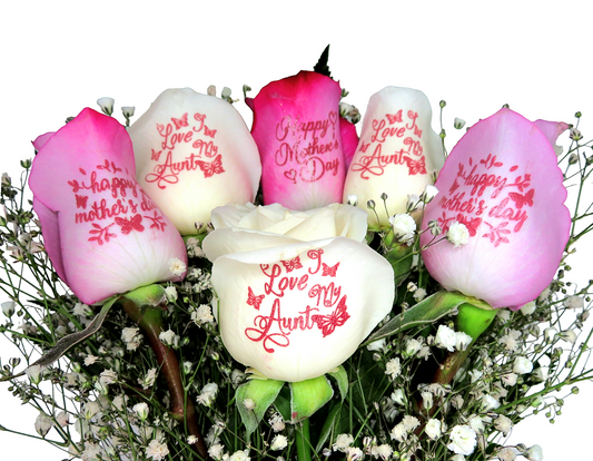 "Happy Mother's Day" "I Love My Aunt" 3 Pink, 3 White Rose Bouquet